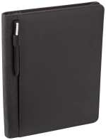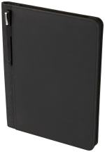 The Vienna Heathered Zippered Padfolio with FSC® Mix Paper features a smooth polyurethane front cover with a heathered, textured back cover. Its convenient design offers a front pocket with an integrated elastic pen loop, making it easy to keep your writing instrument in close reach. Additional features of this zippered Italian UltraHyde padfolio include a plastic smartphone pocket, multiple business card slots, a stretchy elastic cord for securing extra items, and an interior document pocket. This item includes a 11.5” x 8.5” FSC® Mix writing pad. Pen not included. 0.75″ D x 9.38″ W x 12.50″ H