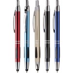 Classic push action retractable with silver accents & convenient stylus tip. Teardrop grippers for writing comfort. Silver engraved imprint. Your choice of blue (default) or black writing ink. Black ink is anti-fraud. Complies with Prop 65. 5.6″ L x 0.4″ Diameter