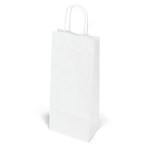 The Vino White Shopper is made with white kraft paper and features twisted paper handles and a serrated cut top. 5 1/2″ W x 3 1/2″ D x 13″ H