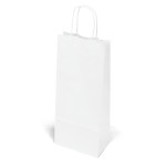 The Vino White Shopper is made with white kraft paper and features twisted paper handles and a serrated cut top. It can accommodate a single wine bottle. 5 1/2″ W x 3 1/2″ D x 13″ H