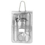 Kit Includes: Scissors, Nail Clipper, Nail File And Tweezers. Bead Chain Attachment. Complies with Prop 65. 2.75″ W x 4.375″ H