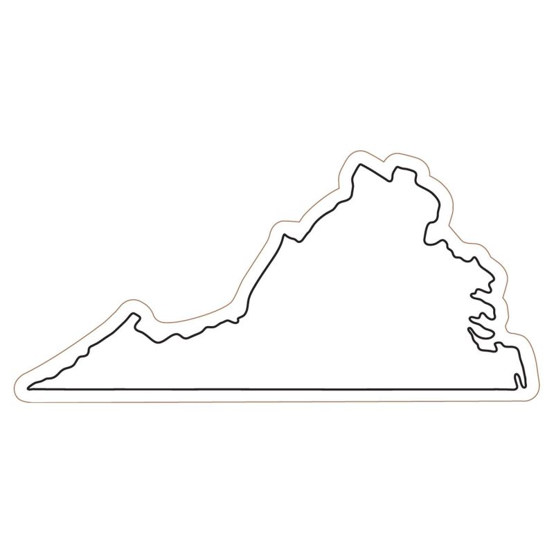 Magnet shaped like the state of Virginia. Motto: Sic Semper Tyrannis. Nickname: Old Dominion. 3.9375″ W x 1.875″ H x 0.01″ D
