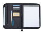 Get a promotional product that’s on the money with the Wall Street padfolio! Made of smooth, simulated leather, this stylish padfolio features a zippered closure, inside organizer, pen loop, curved exterior pocket, slash pocket that fits most tablets and an 8 1/2 x 11 paper pad. This giveaway also accommodates an A4 paper pad and is perfect for any event. Have your logo debossed or silkscreened for brand recognition. Order yours today! Complies with CPSIA, Prop 65. 13.75″ H x 10.25″ L