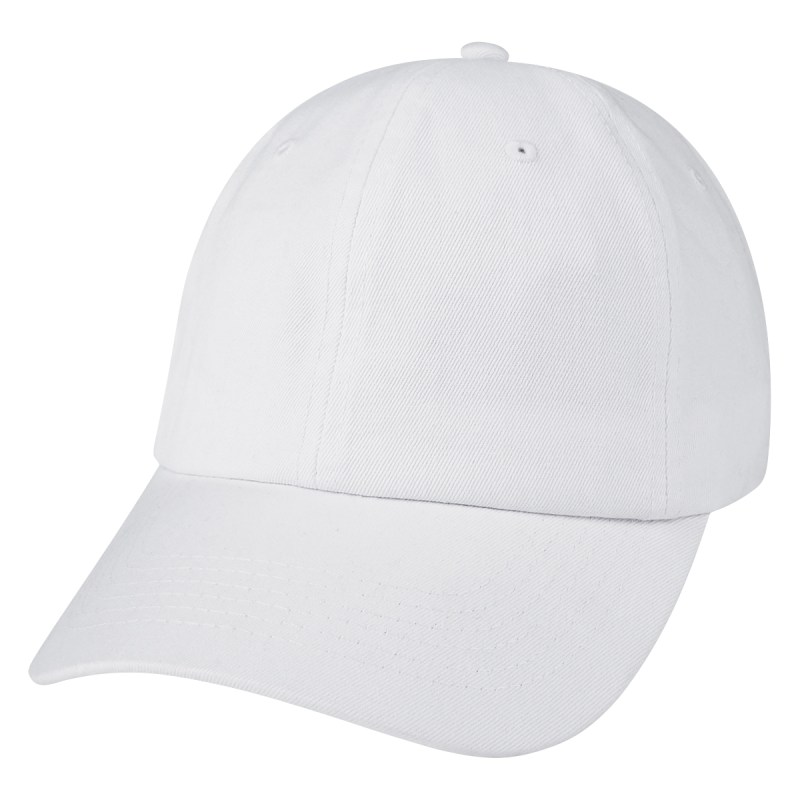 100% Washed Cotton Twill. 6 Panel Low Profile. Unstructured Crown & Pre-Curved Visor. Adjustable Self-Material Strap With Sliding Buckle. Complies with Prop 65. 22cm W x 12.5cm H