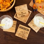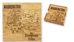 This State Puzzle Coaster Set with Case offers a natural solution for protecting tabletop. These sturdy coasters are crafted from organically-grown Moso® bamboo, an environmentally-friendly material solution that quickly re-grows once harvested. Bamboo is both lightweight & durable a perfect choice for coasters! The coaster set includes a handsome case to store coasters neatly when not in use. The coasters are easy to care for as well: simply wipe them with a damp cloth to clean. Complies with Prop 65. 4″ W x 4″ H