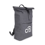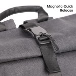 Durable rainproof roll-top backpack with a magnetic quick-release buckle. Made from 300D RPET cationic material, it features nylon zippers, POM plastic hardware, and adjustable polypropylene straps for comfort and reliability. Perfect for everyday use and outdoor adventures. Complies with Prop 65. 16″ L x 5″ W x 24″ H