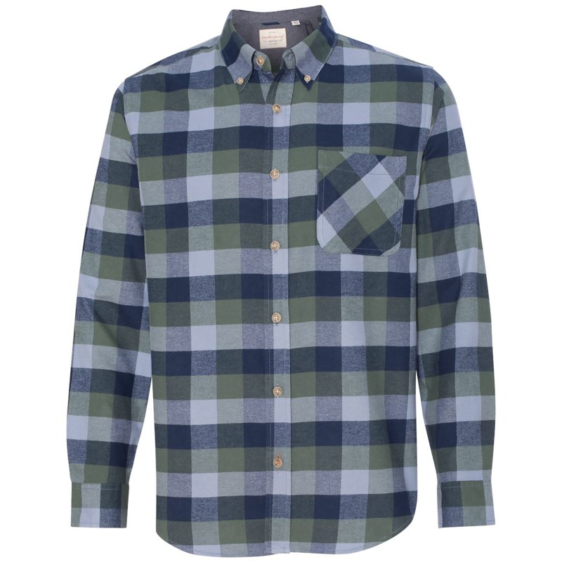 4 oz., 100% cotton yarn-dyed flannel. 100% cotton chambray trim. Single patch pocket. Two-button cuffs. Shirttail hem Exclusive weatherwash for softness. Sizes: S-3XL