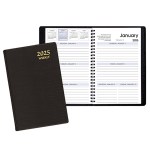 Weekly Appointment Planner, 5-1/2″ x 8-1/2″: Wire bound. 12 months: Jan. thru Dec. One week per opening. Famous quotes each week. Deluxe Continental covers. Phone/address section. Time zone map. Deluxe/refillable cover. Note holder inside front cover. 5 1/2″ W x 8 1/2″ H