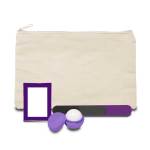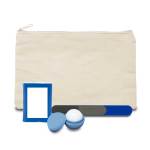 Introducing a petite pouch with an impressive branding impact. This stylish canvas bag is filled with essential promotional items: a sleek round scented lip balm, a plush tissue pack, and a convenient nail file. Equipped with everything your clients need to stay refreshed while on the go. Perfect for trade shows, wellness programs, employee gifts, and any other occasions. Compact, practical, and fully customizable to showcase your brand.