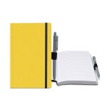 In the market for a product that is “bound” to help your promotional efforts? The Senzabrite perfect bound journal will do the trick! This handy notebook features a semi-flexible PU cover (choose from 9 different colors ) with an elastic closure and matching pen. It has side scoring for easy opening, as well as 100 lined, graph, blank, Euro dot sheets or our unique non-dated weekly sheets. Customize with an imprint of your brand logo and write your next success story in no time! Complies with FSC, Prop 65. 5.25″ W x 8.25″ L