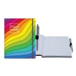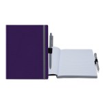 In the market for a product that is “bound” to help your promotional efforts? The Senzabrite perfect bound journal will do the trick! This handy notebook features a semi-flexible PU cover (choose from 9 different colors ) with an elastic closure and matching pen. It has side scoring for easy opening, as well as 100 lined, graph, blank, Euro dot sheets or our unique non-dated weekly sheets. Customize with an imprint of your brand logo and write your next success story in no time! Complies with FSC, Prop 65. 7″ W x 9″ L