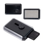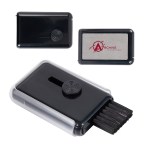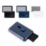 Keep your devices clean with our innovative Whisk cleaning tool! This compact gadget features a flip-open compartment to securely hold a small bottle of spray cleaner, while one side includes a soft cloth screen cleaner protected by a sliding case. Easily access the slide-out button to reveal a handy brush for dusting away keyboards. Constructed from durable ABS plastic, this essential accessory is portable and perfect for ensuring your electronics always look their best. Complies with Prop 65. 3.375″ L x 0.75″ W x 2.25″ H