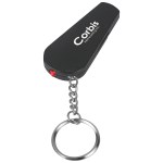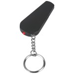 Red Light. Safety Whistle. Split Ring Attachment. Squeeze And Release To Turn On/Off. Button Cell Batteries Included. Complies with Prop 65. 2.5″ W x 1.25″ H