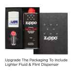 This all White Matte finished Zippo® Windproof Lighter allows for maximum creativity when designing your lighter. The white background is a blank canvas that will fit any and all logo styles. Backed by Zippo’s Lifetime Guarantee. Made in USA. Packaged in a gift box. Lighter fluid not included due to shipping restrictions. Packaging that includes lighter fluid is available with an upcharge. Complies with Prop 65.