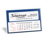 The Window Desk Calendar features your imprint in a window and a 5 1/4″ x 1 5/8″ 3-month-in-view 13 month date pad. Available in Black, Red or Blue with White trim or Woodgrain with Cream trim, all with a black ink imprint. See “Options” for other than standard imprint colors. Mailing envelopes are included, not inserted. 5 7/8″ W x 3 13/16″ H