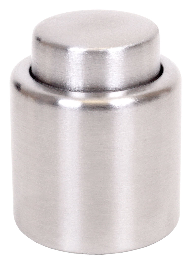 This brushed stainless steel stopper has vacuum action to protect the flavor & freshness of your wine. Simply place the stopper in the bottle and it will self-lock, and the silicone insert creates an airtight seal. To release, just push the button. For permanent imprint, this item is laser engraved. 24hr production not available for direct imprinting. 3rd imprint option Pad Print on Top (1 color only) 7/8″ diameter. 4th imprint option Pad Printed, Side (optional, 2 colors max), 3/8″ w x 1 1/4″h. Complies with Prop 65. 1 3/4″ Diameter