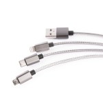 Multifaceted charger. The 4-in-1 multi-charger will travel with you everywhere! Handy cable system includes 1 USBM, Micro USB Connectors, C pin connector. Charge multiple device types with one convenient portable tool. Cable with powered USB port of device or smartphone Includes 1 USBM, micro USB, C pin 10″ length. Complies with ASTM, CPSIA, C-TPAT, FDA. 10″ L