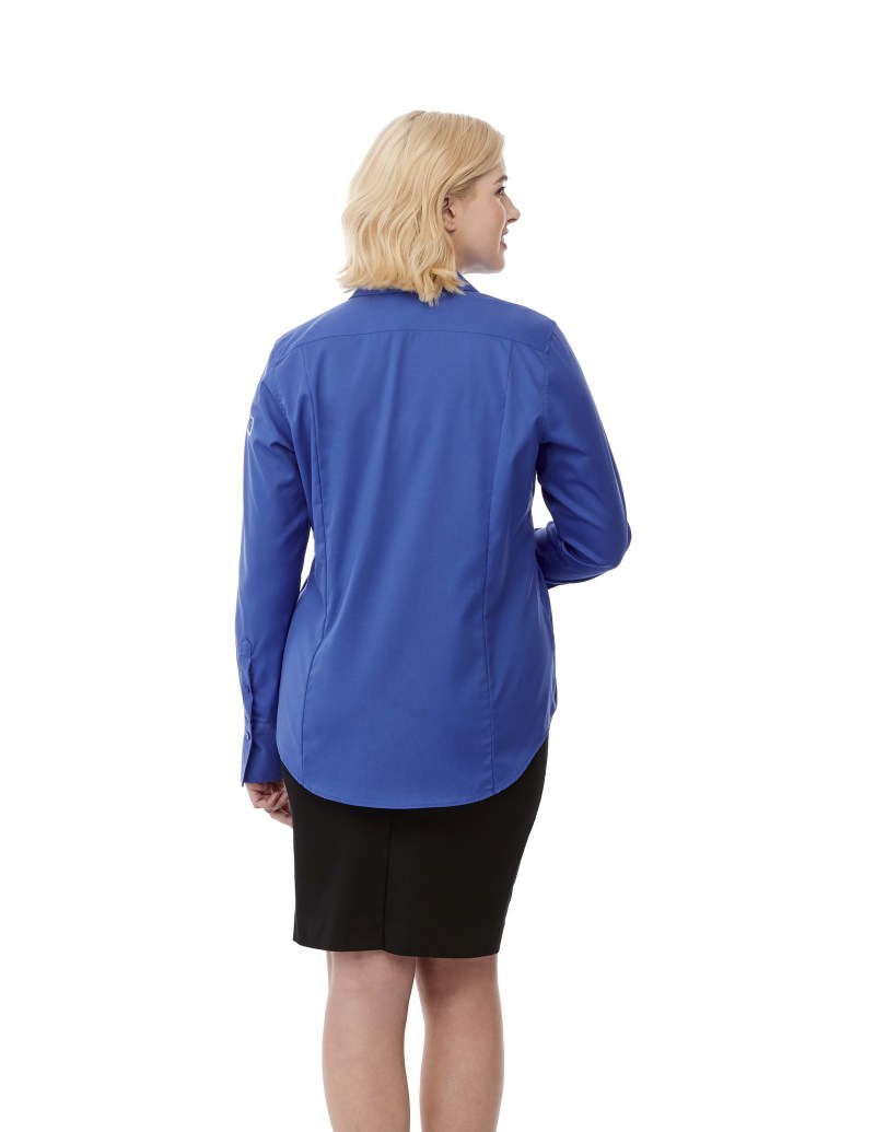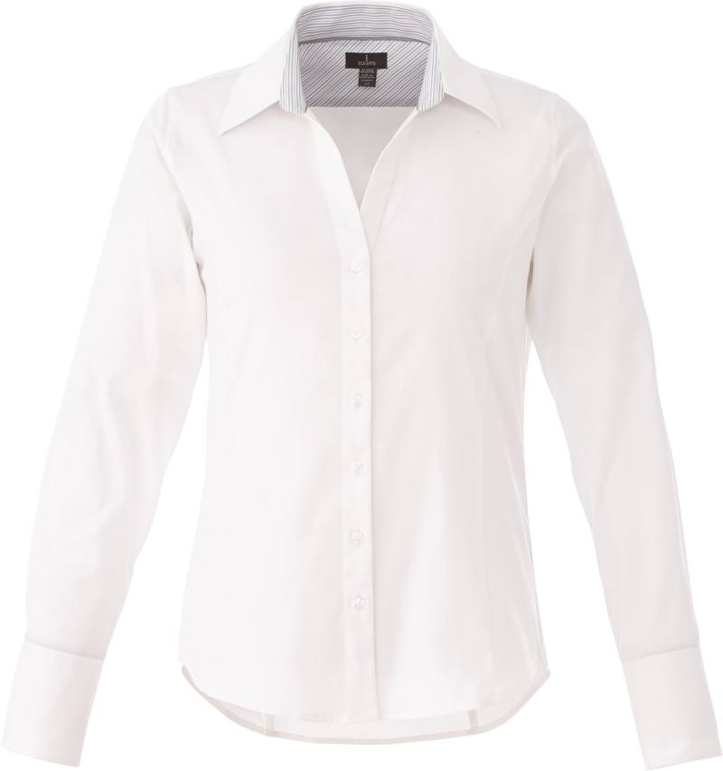 The Cromwell Long Sleeve Shirt in women’s sizes brings a touch of sophistication to the classic business look. Available in staple colors, it’s got an iron free fabrication and finish that save you time in the morning. This versatile woven is a great look for employees at corporations, small businesses, schools and universities. The Cromwell features shaped seams and tapered waist for flattering fit. 10.43″ D x 13.78″ W x 1.77″ H