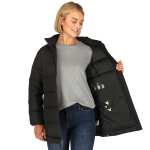 The Geneva Eco Packable Down Puffer Jacket in women’s sizing features 100% recycled nylon body, and 100% recycled polyester faux down fill. High-tech minimalism can go a long way outdoors, especially when it looks this good. With its high puff, this full zip jacket offers active people a versatile and stylish apparel solution that’ll keep its users warm throughout winter. Women’s style includes shaped seams and taperd waist, longer mid length with CF 2-way zipper and removable hood. Packable into a stuff sack, you can be sure that this jacket will always find room in your suit case for your next adventure! One percent of all Eco sales are donated to environmental profits through a partnership with 1% For The Planet. 0.00″ D x 0.00″ W x 0.00″ H