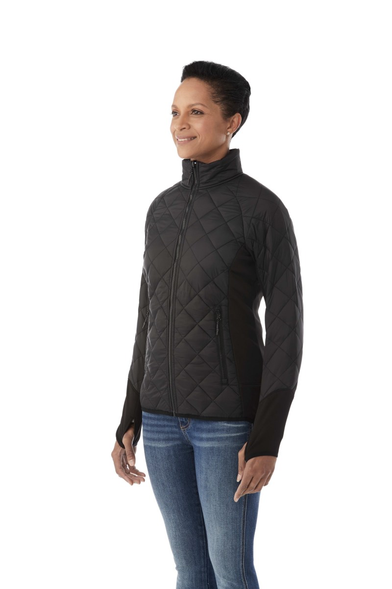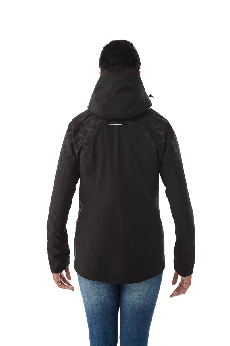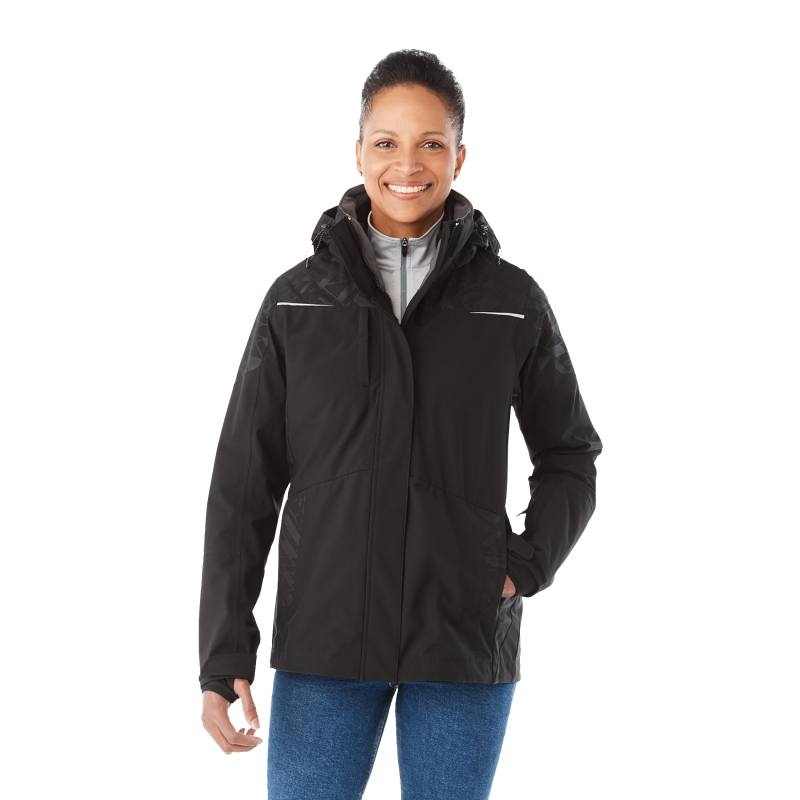 The Yamaska 3-in-1 Jacket in women’s sizes will keep you ready for any weather! This fully seam-sealed outer softshell jacket is waterproof and breathable, as is its removable insulated hybrid jacket liner. The removable liner can be worn on its own or layered with the outer shell for extra warmth and protection. This high-performance jacket keeps comfort in mind. It offers extra collar padding for coziness, articulated elbows, ergonomic sleeves, and and thumb exits to keep your hands free. Added features like easy-grip zipper pulls, a detachable hood, elastic drawcords at the hem, interior media pocket and hidden pockets at the sleeve and interior make this jacket highly functional. The outer jacket has an on-trend graphic pattern and reflective elements. 0.00″ D x 0.00″ W x 0.00″ H