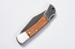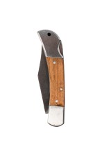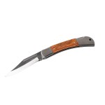 This stainless steel folding Pocket Knife has a locking handle for safe transport and storage. The wood handle laser engraves to black and a gift box is included. 7.375″ L x 1.25″ W