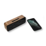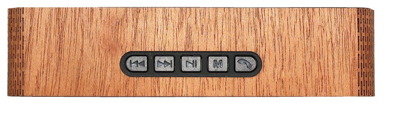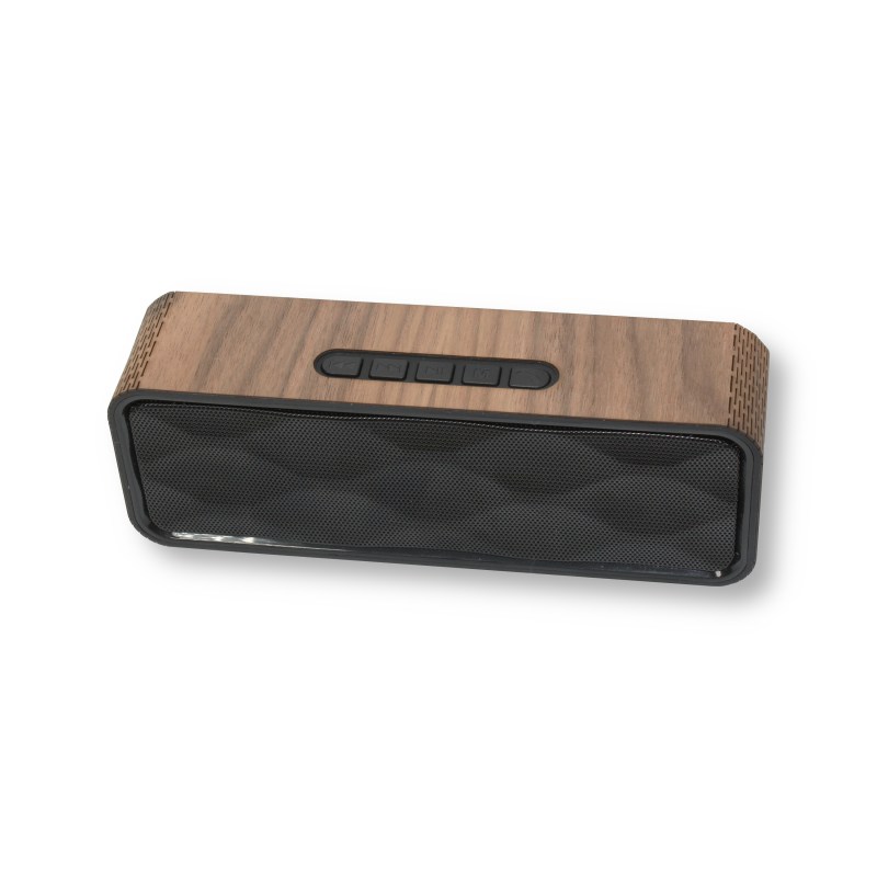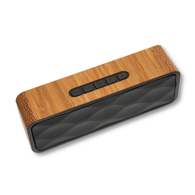 Wooden Bluetooth Speaker covered in real hand-cut, 100% real wood locally sourced in the USA. Portable Bluetooth Speakers V4.2 Wireless Stereo Speaker with HD Audio & Enhanced Bass, Built-In Dual Driver Speakerphone, FM Radio, TF Card. Microphone allows you to take calls from your speaker. Small portable design – impressive sound – small package. 1500 mAh Lithium-Ion Battery for 10-12 hours of playtime. Latest in Bluetooth technology; wireless speaker has a range of 30 feet. Complies with Prop 65. 7.25″ L x 2.25″ W x 2.125″ Thick