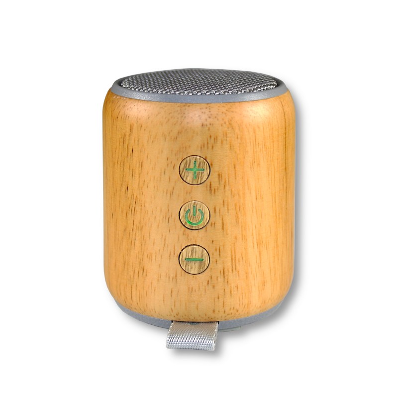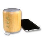 Wooden Bluetooth Speaker built from solid hardwood. Bluetooth 5.0 connectivity, wirelessly stream from any Bluetooth device. High-fidelity audio components for quality sound. Built-in Microphone allows you to take calls from your speaker. Small portable design – impressive sound – small package. 2000 mAh Lithium-Ion Battery for 8-10 hours of playtime. Latest in Bluetooth technology; wireless speaker has a range of 30 feet. Complies with Prop 65. 3.5″ H x 3″ W x 3″ Diameter