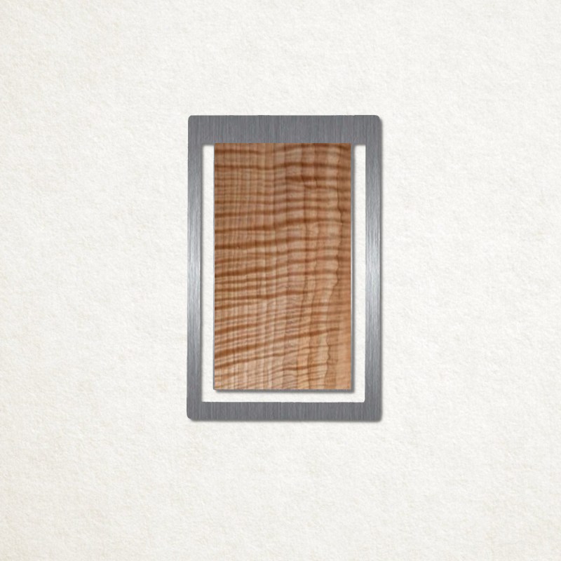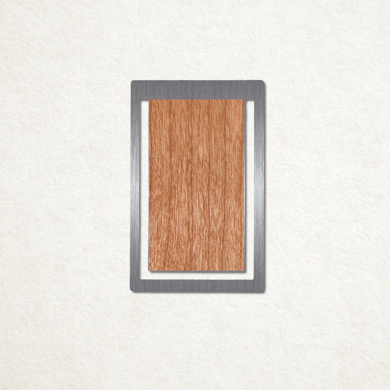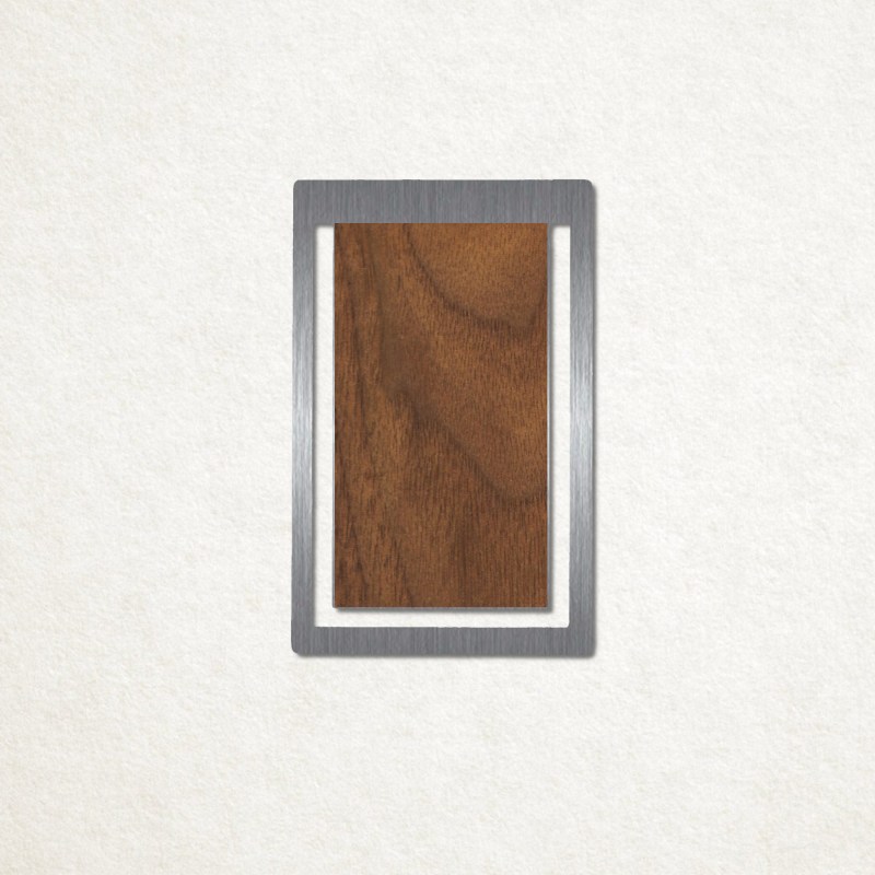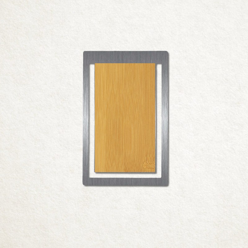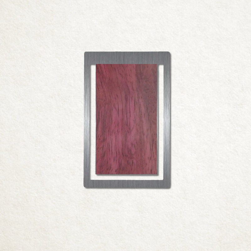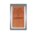 Stainless-steel bookmarks covered in real wood. Wooden bookmarks are a great giveaway or gift for your book minded enthusiasts or for holding that great contract together like an oversize paperclip. Each wood bookmark is custom crafted and designed in our Hidden Springs, Idaho woodshop. Individual personalization available; see customization options. Complies with Prop 65. 2.75″ W x 1.85″ H x 0.1″ Thick