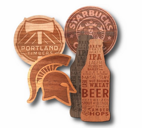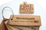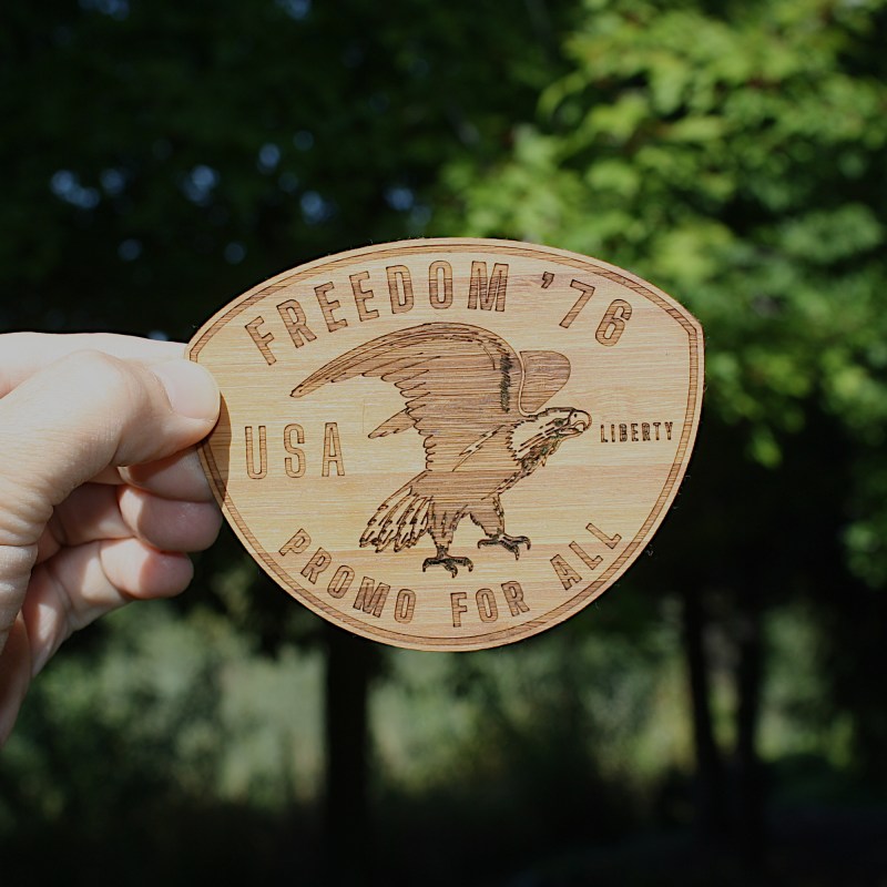 Wood stickers are a unique and interesting way to highlight your company logo. Vinyl stickers end up in the garbage. Wood stickers will be treasured. Apply them to virtually anything with a flat or cylindrical surface. Real wood & strong 3M adhesive. Handcrafted in Hidden Springs, Idaho. 100% Made in USA. Laser engraving all the way to the edges and cut around logo for A custom look. Individual personalization available; see customization options. NOTE – SEE SIZE UPGRADE PRICING. Complies with Prop 65. 1″ W x 1″ H x 0.1″ Thick