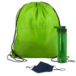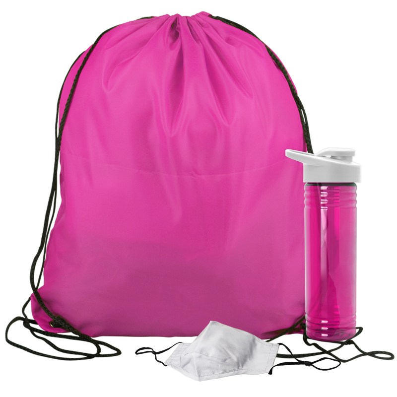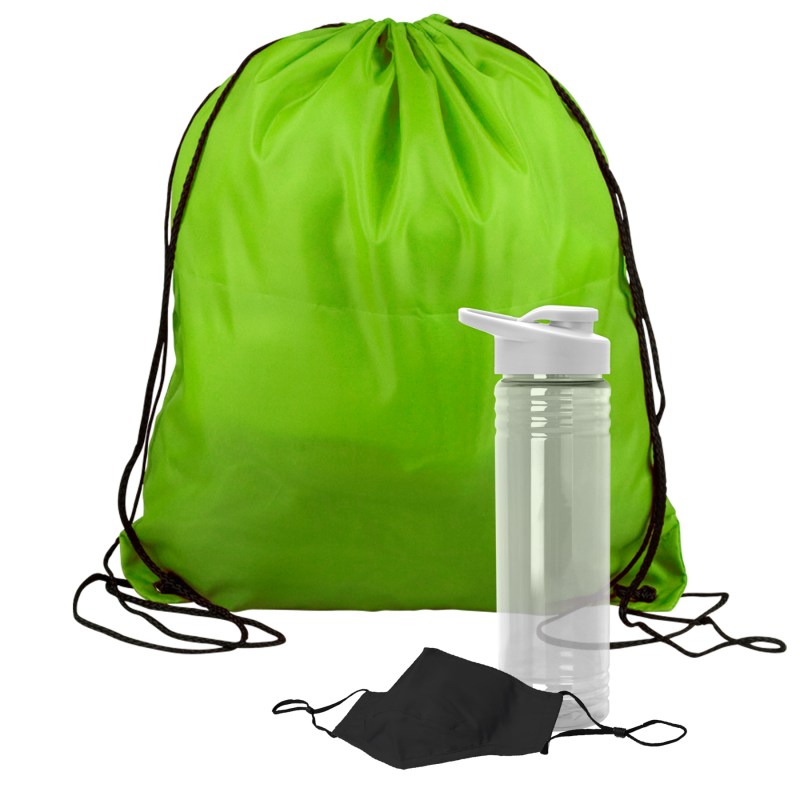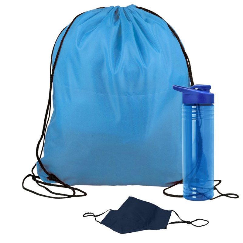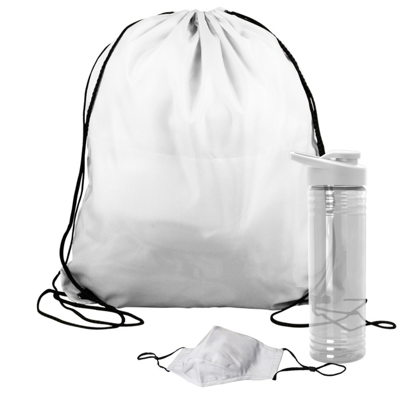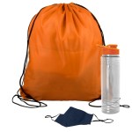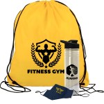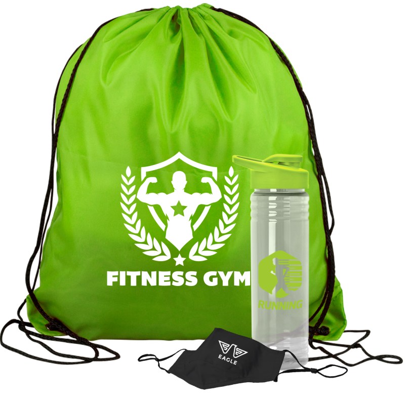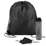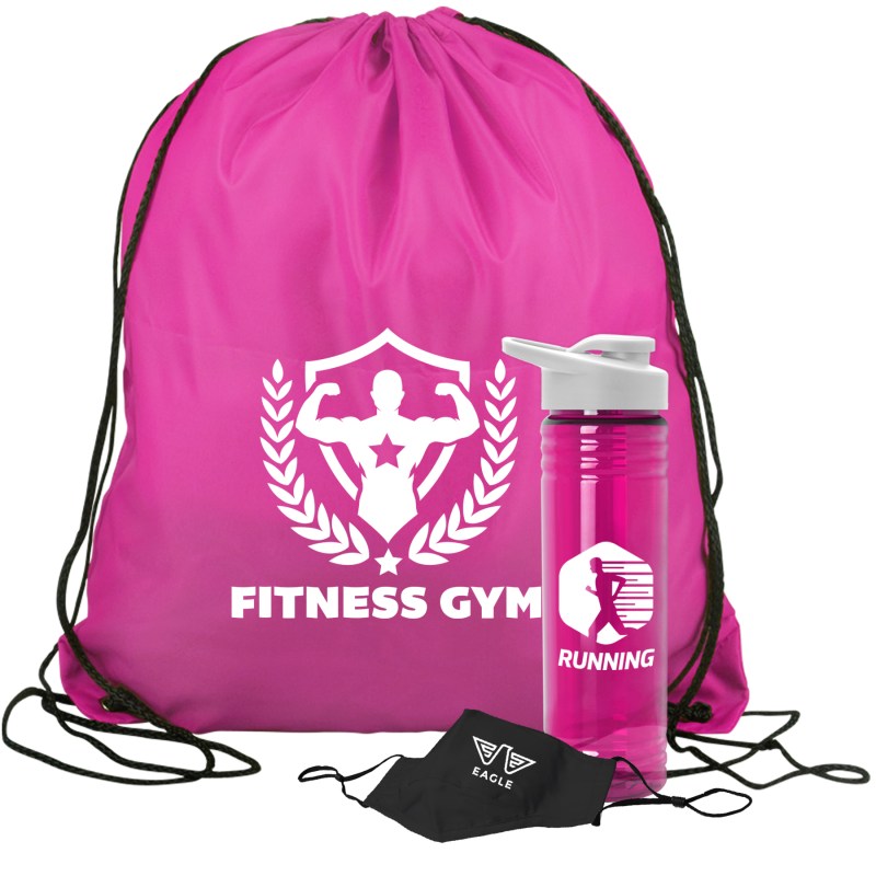 Get fit, don’t quit! Everything you need to restart. Work out safely. While protecting yourself and others. Perfect as welcome gifts for reopening fitness centers! Gym kit includes: sports bottle, 100% cotton mask, micro-fiber towel and 2 oz. Hand sanitizer gel bottle. 1 Color imprint on the bottle and 1 color imprint on the mask. Custom kits available. Complies with ANSI, CPSIA, Prop 65. 3.125″ Diameter x 9″ H