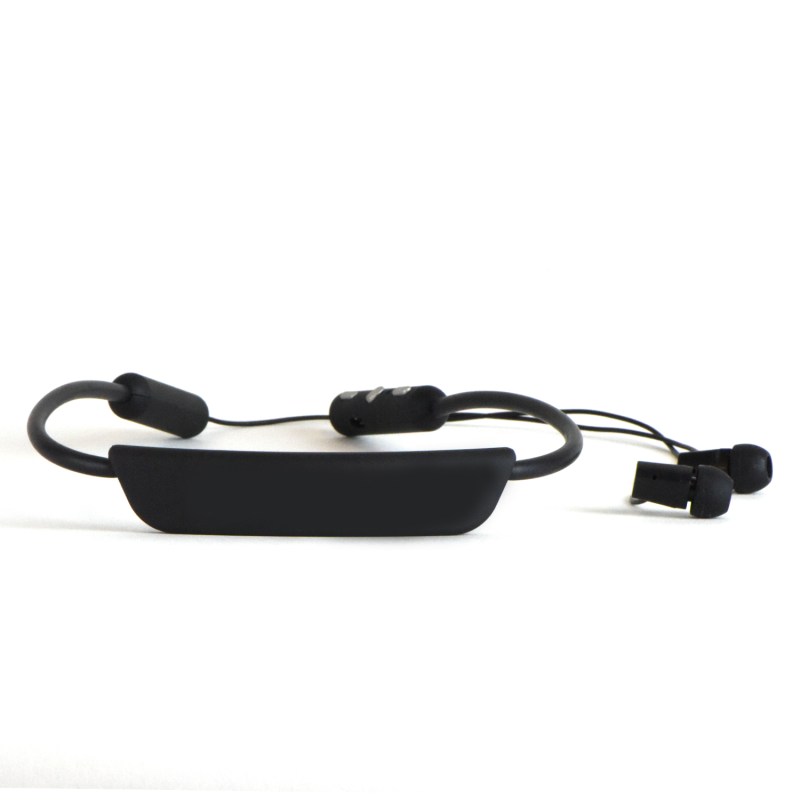 This Bluetooth (R) headset has ear buds and is water resistant. It also contains voice prompt controls. 5.0″ W x 0.75″ H x 6.5″ D