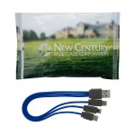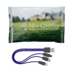 Elevate your brand with our custom full-color imprinted wrapper, designed to beautifully showcase your logo. Our vibrant 3-in-1 charging cable features a multiple USB adaptor, making it the perfect solution for all your charging needs. This innovative cable is compatible with iOS devices, Micro USB, and Type C USB, ensuring you can charge all your devices with ease. Plus, our patented design sets us apart from the rest, guaranteeing top-notch quality and performance. Choose our charging cable to make a lasting impression and keep your devices powered up in style. Complies with CE, Prop 65. 7″ L x 4.25″ H