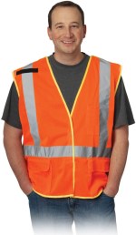 Made with a breathable, breakaway Polyester mesh Sizing from Medium to 5X. ANSI/ISEA 107 and CAN/CSA Z96 compliant, Class 2 vest Featuring 2 silver reflective tape for better visibility, a hook-and-loop closure, 2 lower external flap pockets and 1 upper chest pocket and mic tabs. 1″ D x 25″ W x 27″ H