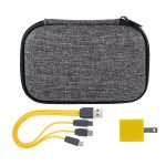 Introducing the X Line Zipper Case featuring a sleek design and convenient zipper closure. The UL Square USB Wall Charger boasts a patented design and is UL Listed for safety and reliability. Stay connected with the colorful 3-in-1 charging cable, equipped with a multiple USB adaptor for ultimate convenience. This versatile cable is compatible with IOS devices, Micro USB, and Type C USB, ensuring you can charge all your devices with ease. Experience seamless charging with this high-quality and innovative charging solution. Complies with CE, cUL, FCC, Prop 65, UL. 4″ L x 1.75″ W x 2.75″ H