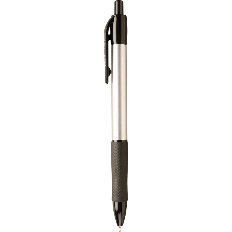 Our patented hybrid ink now available in a fine point pen. Shimmering silver barrels contrast with vivid trim for a bold statement. Ribbed rubber grip & supersmooth writing black hybrid ink for writing enjoyment. “HUB” branded clip. Complies with Prop 65. 5.6″ L x 0.46″ Diameter