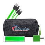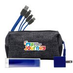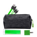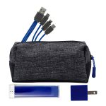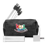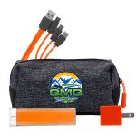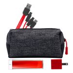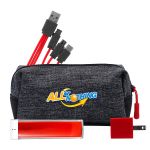 Introducing the XL X Line Travel Pouch, featuring a vibrant zipper for a pop of color. Pair it with the UL Square USB Wall Charger, a patented and UL Listed device, for fast and efficient charging. For on-the-go power, trust the UL 1800 Providence Power Bank, UL Certified for safety and reliability. Stay connected with the colorful 3-in-1 charging cable, complete with a patented multiple USB adaptor. This versatile accessory is compatible with IOS devices, Micro USB, and Type C USB, making it the perfect solution for all your charging needs. Complies with CE, cUL, FCC, Prop 65, UL, UN38.3. 6.75″ L x 3.5″ W x 3″ H