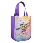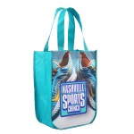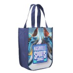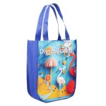 Made from 80 GSM non-woven polypropylene, this curved bottom tote bag features edge-to-edge sublimated decoration on the front panel and resembles the popular Lulemon bag shape. Tote bag easily fits standard magazine and notebooks. Reinforced 16″ Black handles and a 4 1/2″ gusset means its the perfect size for daily use. 12″ H x 9″ W x 4 1/2″ D