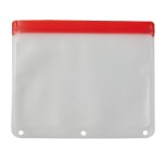 Reusable and washable, this PEVA school pouch features a ziplock closure on top. Pouch can fit into three ring binder and holds multiple pencils, pens, erasers and other school supplies. White ink/imprint not available. CPSIA Compliant. 8 1/16″ H x 9 3/4″ W