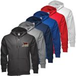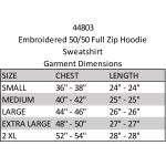 Promote Your Brand With This Comfortable Zippered Hoodie – Embroidered. 50% cotton/50% polyester. Crewneck style. Ribbed cuffs & waist. Complies with Prop 65.