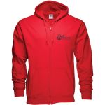 Promote Your Brand With This Comfortable Zippered Hoodie – Screen Printed. 50% cotton/50% polyester. Crewneck style. Ribbed cuffs & waist. Complies with Prop 65.