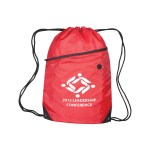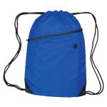 Luna Drawstring Backpack made of 210 denier polyester. Nylon braided drawstring closure. Reinforced bottom corners. Front zipper pocket and rubber earbud port. Metal grommets helps to prevent tearing. 13 1/2 W x 18 H. 13.5″ W x 18.0″ H x 0.0625″ D