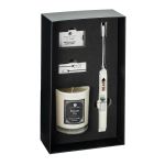 This collaboration features Zippo’s Rechargeable Candle Lighter paired with a curation of Northern Lights’ most-loved fragrances poured in a modern glass candle ready to elevate any space. This gift set comes with a Champagne Zippo Rechargeable Candle Lighter, an 8 oz Balsam Fir fragrance candle in a Champagne Gloss finish glass vessel. Gift boxed. Laser engrave or Pad Print (1-2 color max). . 12″ H x 7.25″ W x 3.63″ L