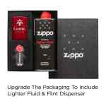Zippo’s Iced process is featured on this Candy Apple Red™ lighter. Backed by Zippo’s Lifetime Guarantee. Made in USA. Packaged in a gift box. Lighter fluid not included due to shipping restrictions. Packaging that includes lighter fluid is available with an upcharge. Complies with Prop 65. 0.5″ H x 1.5″ W x 2.25″ L