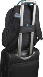 The Zoom DayTripper Computer Backpack includes a dedicated computer pocket with side-entry access to secure laptops up to 16″. This specialty computer backpack includes an open main compartment with a dedicated zippered nylex-lined padded iPad pocket and a zippered top pocket with organization panel and earbud port access. Store additional items in the zipper lower front pocket and keep valuables safe in the top zip lined pocket. The Zoom DayTripper Computer Backpack includes neoprene handles, a molded EVA back for ventilation, and padded straps with smartphone holder. 8.05″ D x 13.25″ W x 18.35″ H